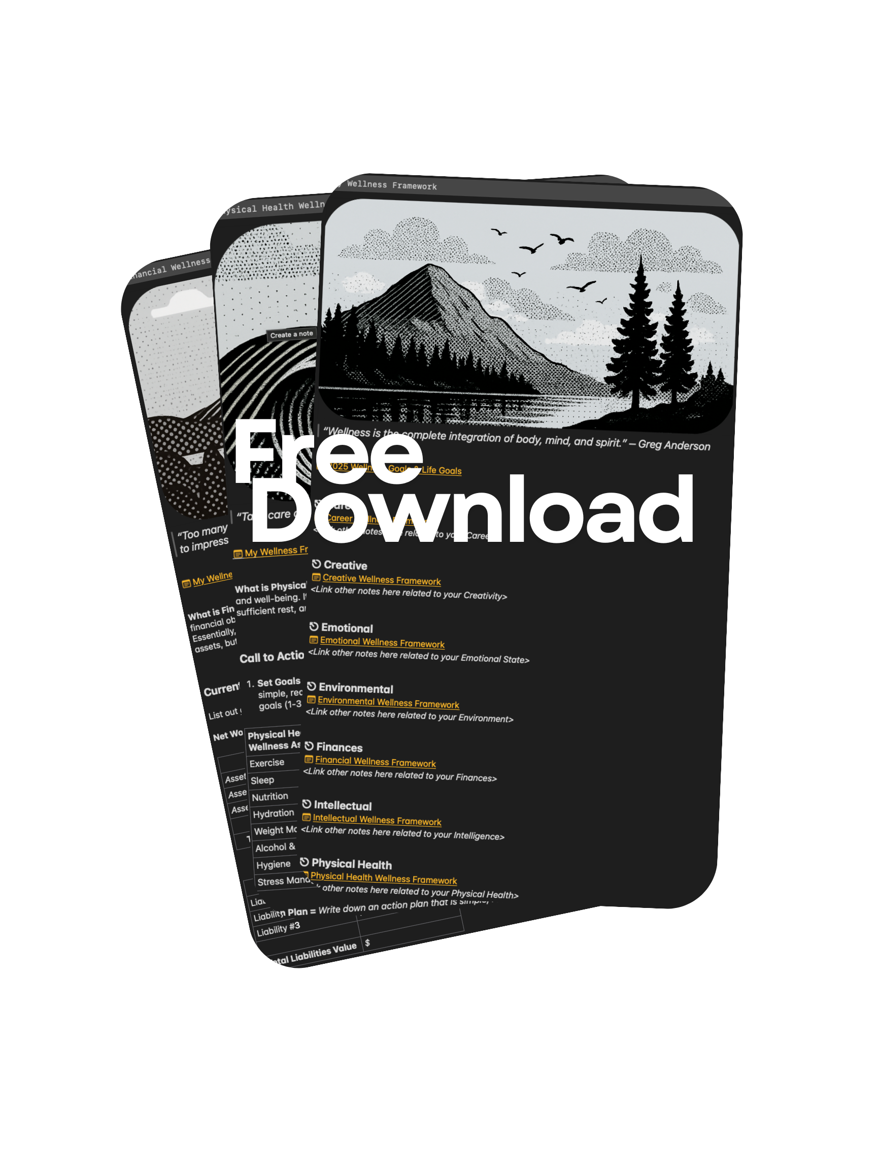 My Wellness Framework digital templates are in Markdown Format (*.md) and can be imported into many common note-taking applications such as Apple Notes (shown in product picture), Obsidian, Bear, or Evernote. Ensure your note-taking application accepts Markdown Format before purchasing.